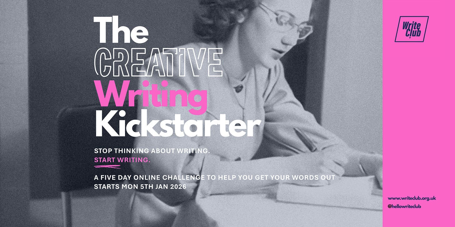 Let’s get 2026 off on the right foot (or the left foot, or your wheels depending on your creative style!) From Monday 5th Jan, join us in the WriteClub Zoom for five days of 60 minute creative sessions…
